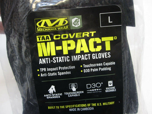 BLACK MILITARY TACTICAL MECHANIX WEAR M-PACT GLOVES LARGE COVERT TOUCH SCREEN