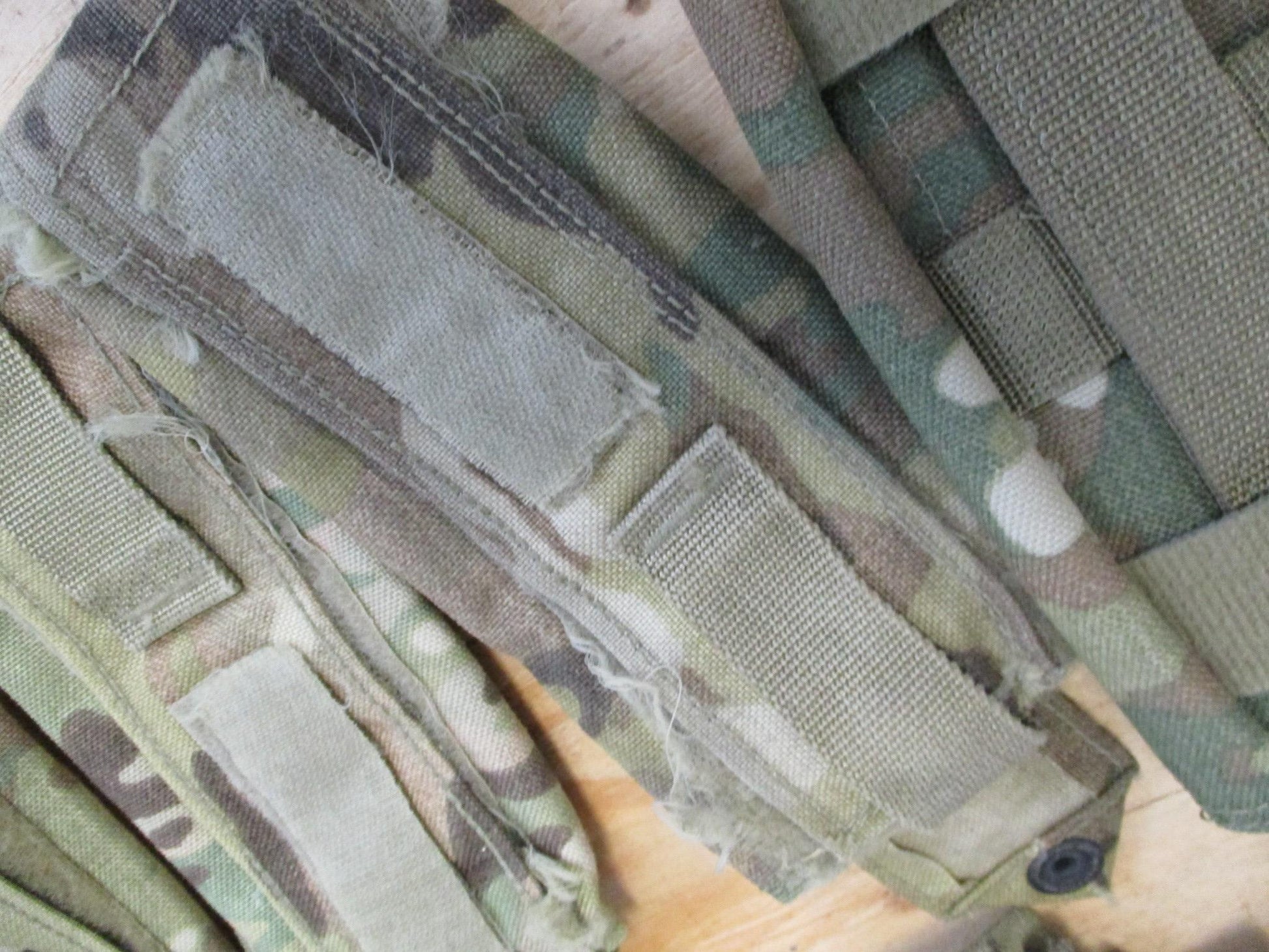 These are used in good working condition. They do not have any rips or holes. However, it appears that someone ran them through a washing machine and it messed up the Velcro a little, but they are still functional. See all pictures for a better description.
