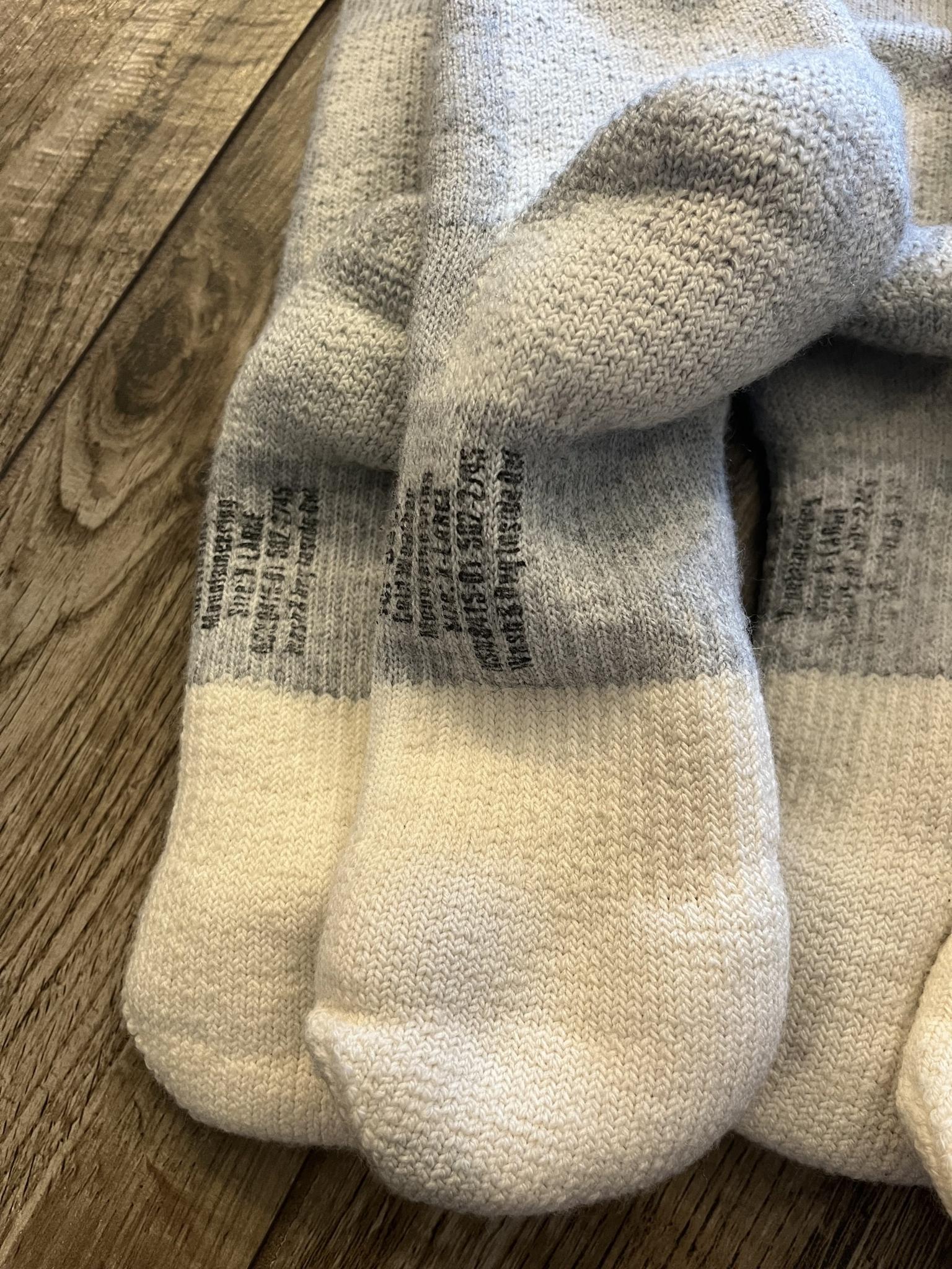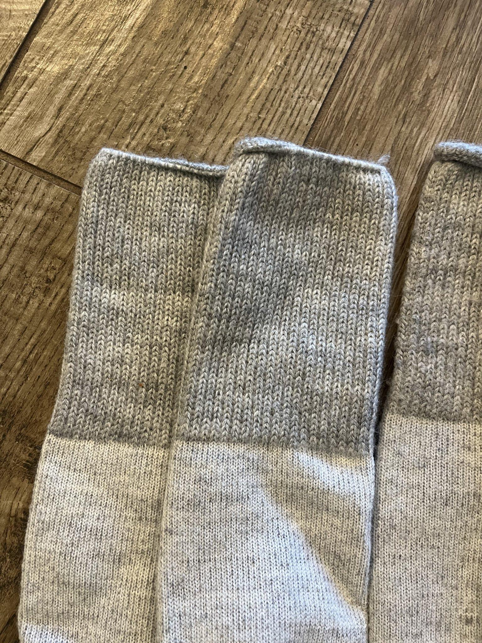 These socks are in very good used condition. They have been carefully inspected and show minimal signs of wear. There are no holes, tears, stains, or significant thinning of the fabric. The elastic at the top is still firm and holds its shape. These socks are ready for many more adventures!