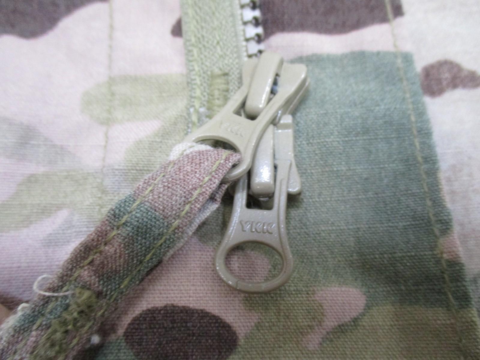 This jacket is in very good used condition. It has been inspected and shows minimal signs of wear. The fabric is clean with no significant stains, tears, or holes. All zippers and Velcro closures are fully functional. The camouflage pattern remains vibrant. Please refer to the images for detailed visual confirmation of the condition.