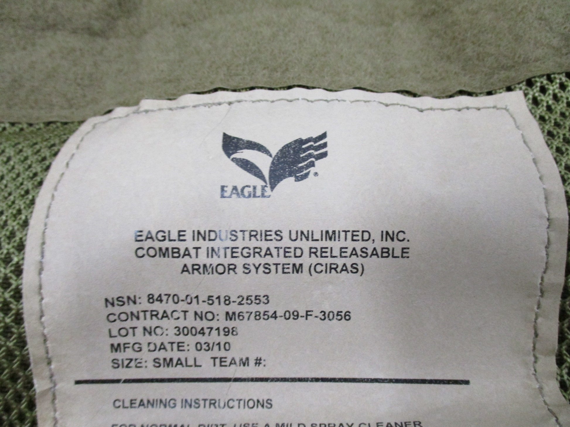 EAGLE INDUSTRIES KHAKI TAN CIRAS PLATE CARRIER (NO ARMOR) RELEASABLE VEST SMALL