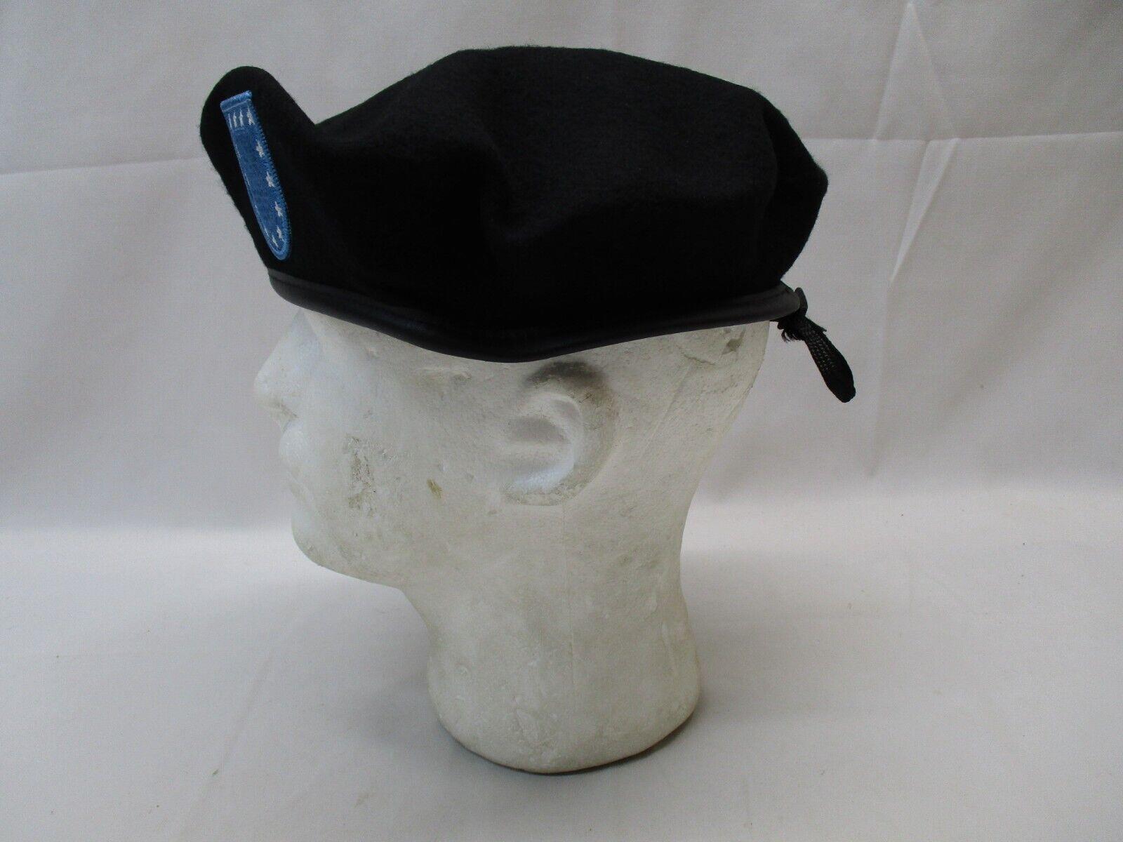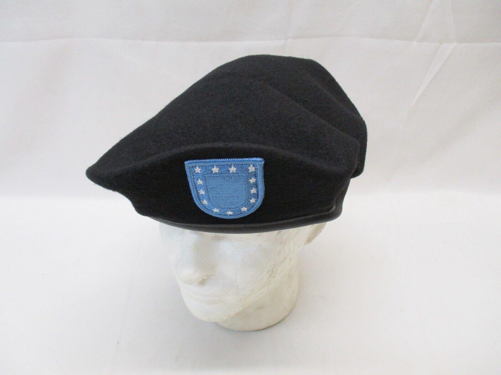 NOS USGI ARMY 100% WOOL BLACK BERET COMMANDO HEADGEAR MILITARY HAT w. FLASH