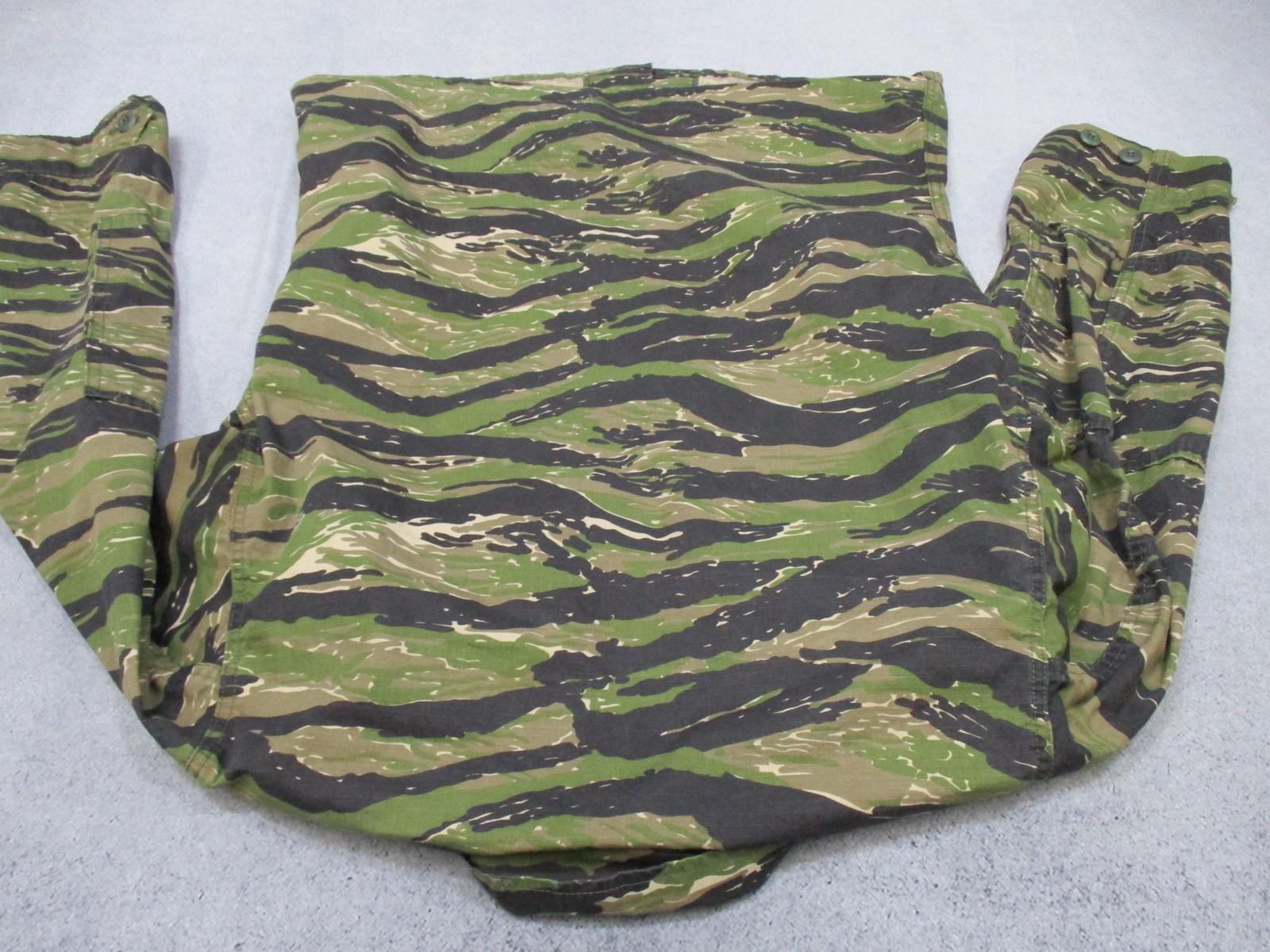 Authentic Propper Tiger Stripe jacket in Medium Regular. Classic military-style design with a bold Tiger Stripe camouflage pattern. Durable and functional, ready for continued use.