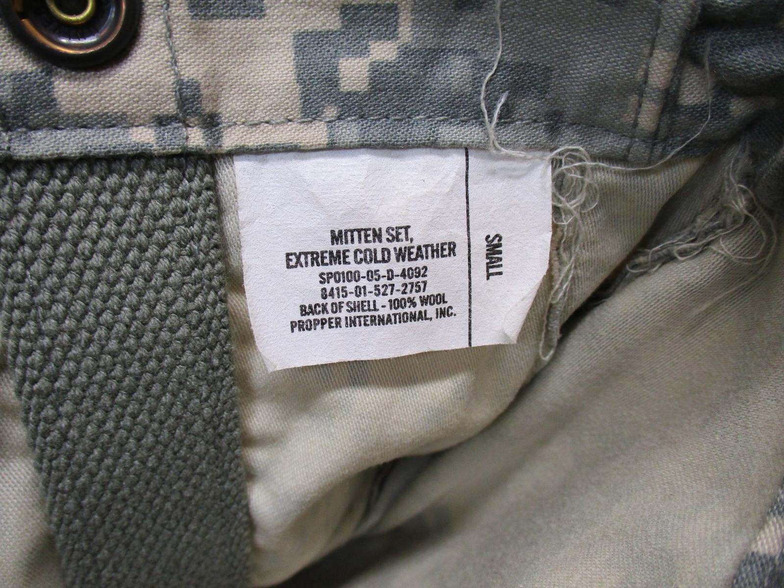 Genuine US Military Issue, NSN # 8415-01-527-2757 ACU ECW Arctic Mittens.