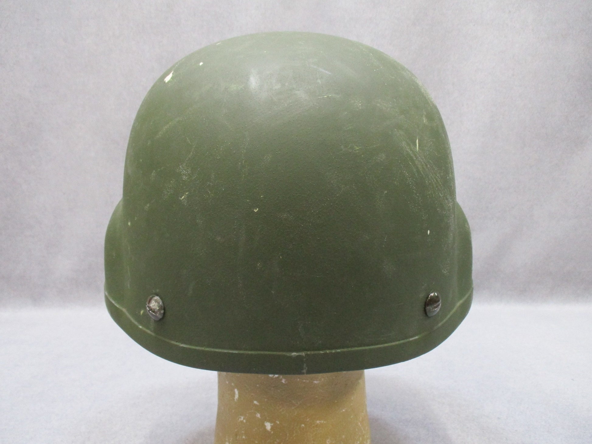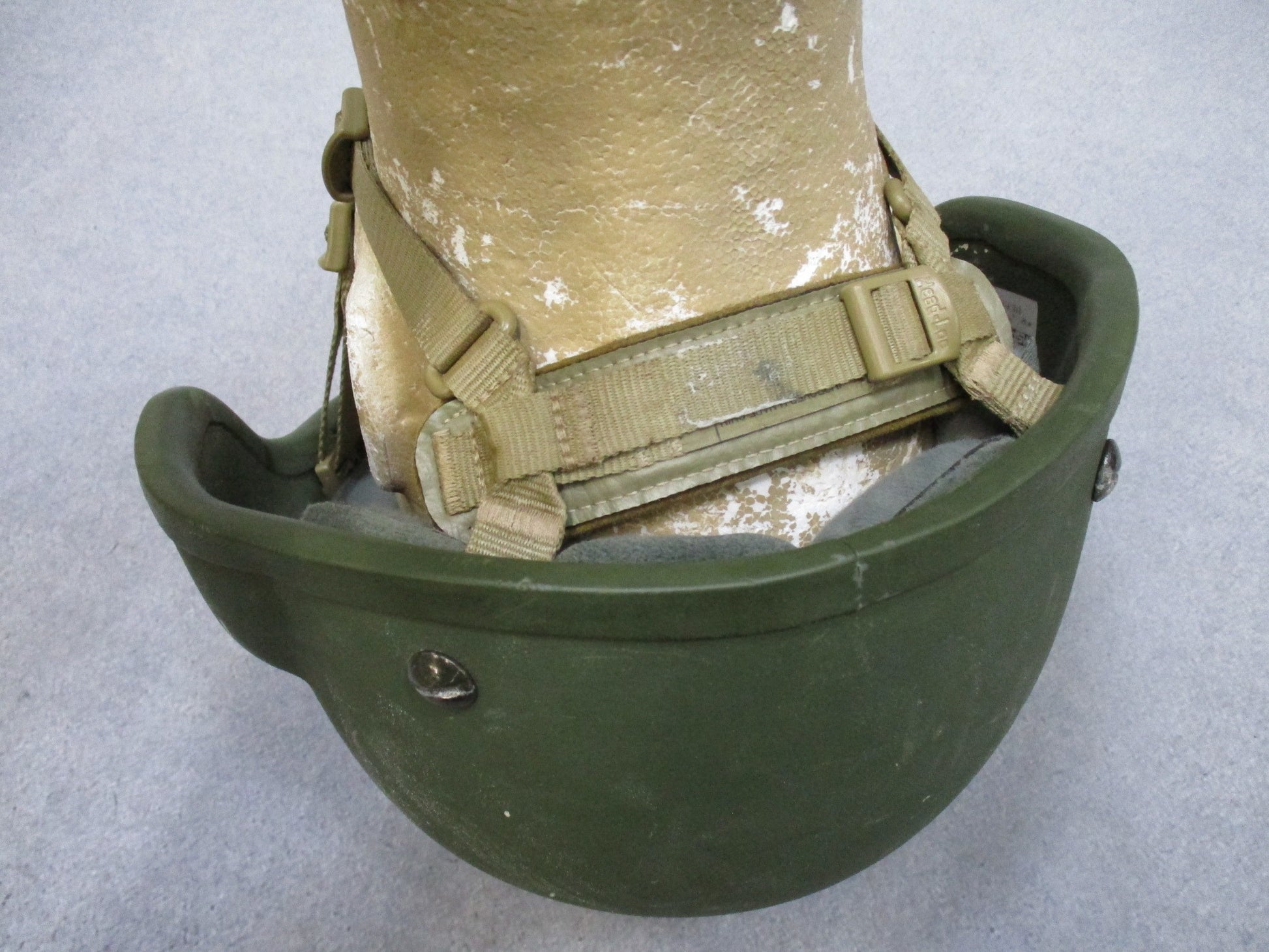 Authentic USGI Advanced Combat Helmet (ACH) manufactured by MSA. This is a genuine military-issued ballistic helmet in classic green, complete with interior padding system and chin strap.