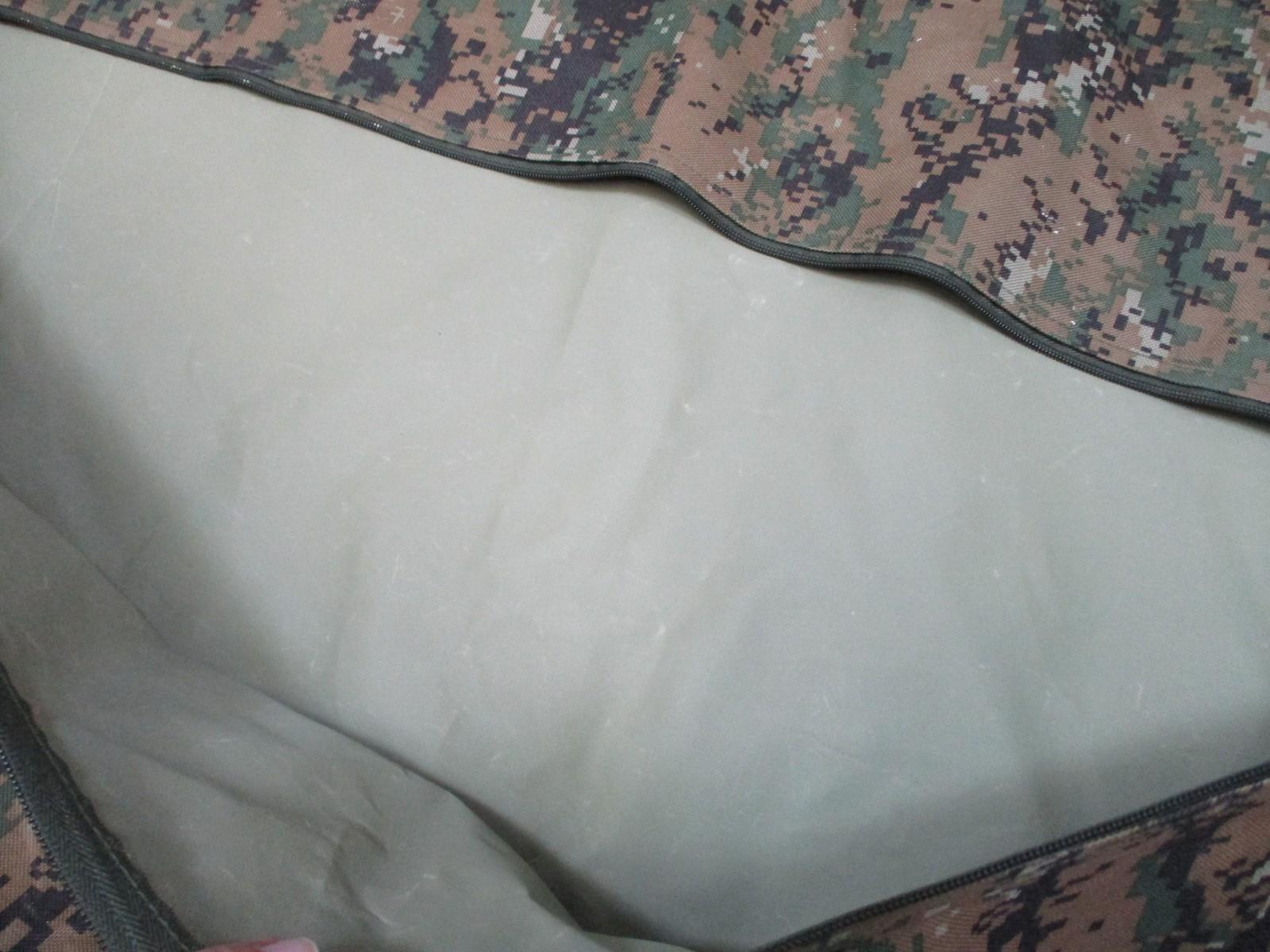 This garment bag is in good used condition. It displays the Woodland MARPAT USMC pattern and has no major damages. However, there are minor scuff marks on the exterior fabric, which are typical signs of use. The zipper is fully functional.
